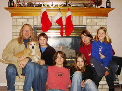 Merry Christmas 2005 from the McCluggages! Bruce (with puppy Tucker), Cameron, Jonas, Paige, Mary Ellen and Carmelle |
